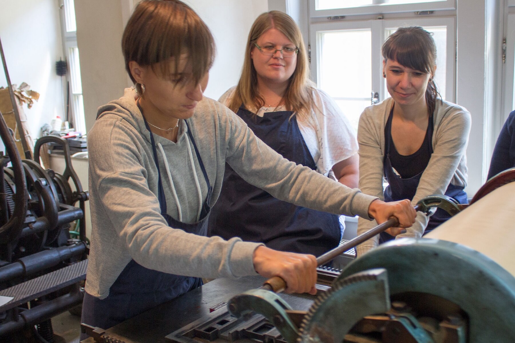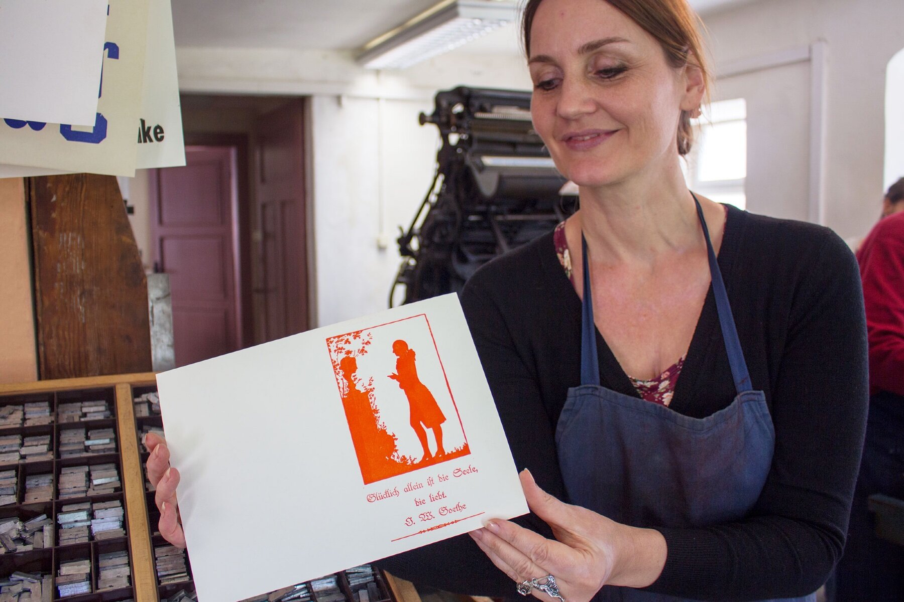 Wir laden zum Frühjahrsdruckkurs in die Pavillon-Presse ein. Diesmal dreht sich alles um die altdeutschen Schriften. Wir beginnen mit einer kurzen theoretischen Einführung in die Entwicklung dieser Schriftgattung, ihren Zeichensatz und früher üblichen Satzregeln des sogenannten Fraktursatzes. Im Anschluss können die Teilnehmer dann selbst eine kleine Drucksache (Postkarte, Poster etc.) mit einer der zahlreichen altdeutschen Schriften unserer Sammlung setzen und drucken.