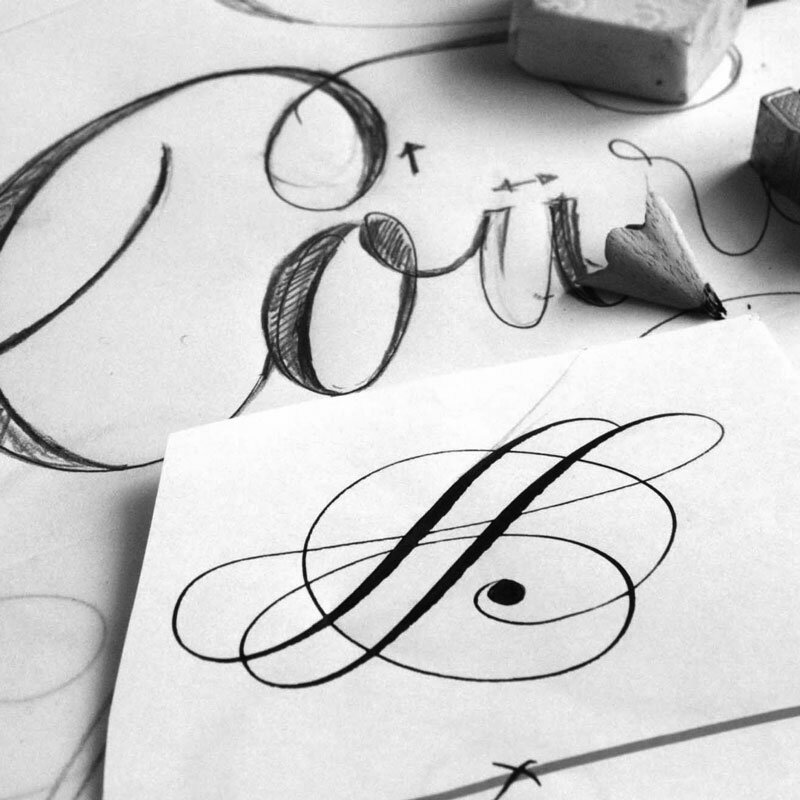 5. Einen Schriftzug entwickeln, basierend auf der eigenen Handschrift … Wie fange ich an? Brauche ich als Basis eine »gute« Handschrift? Wie schreibe ich mich ein? Wie kann ich den typischen Strich z.B. der Spitzfeder zeichnerisch umsetzen? Wie und wo integriere ich Schnörkel? Wie optimiere ich meine Entwürfe? Was mache ich manuell, was später am Rechner? … und welche Verantwortung habe ich als Schreibender? Wir werden Papier nehmen … wir werden schreiben, zeichnen und auf all diese Fragen ein